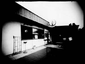 Frajeřinka je pak ještě kousek černýho plastu na izolační pásce, coby závěrka. Není to až tak nutný, ale přece jenom se s tím operuje líp, než to celou dobu držet palcem. Neb si musíte uvědomit, že kdesi v temné komoře to naládujete fotocitlivým materiálem a pak jdete teprve kamsi cosi fotit. Třeba ven na ulici, přes půl sídliště nebo kamkoliv do svého či i jiného města. Nemůžete to nechat otevřený furt. S přelepkou si špacírujete, někde bedničku postavíte, zaměříte, nachystáte, narafičíte - pak odlepíte ten "špunt", necháte exponovat, znovu přelepíte a šouráte se zpátky domů vyvolávat.