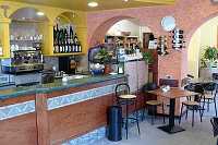 Kromě družných hovorů ještě s jakýmsi dalším návštěvníkem to skončilo tím, že odmítal si nechat odpolední kávovou smršť vůbec zaplatit. Já na něj, že zaplatit musím, on zas, že ne, páč jsem mu přivezl dárek. Bóže, dyk to byl jenom vtip - hloupej pohled (ale vidíte, k čemu takovej pohled je?). No jo, vzpomněl jsem si, ale to nestojí za dvě (v italským podání dvojitý) kafe a několik dalších věcí. A von, že jo, že mu to radost udělalo a tak. Nakonec jsme se propřeli ke kompromisu - mohl jsem zaplatit jednu minerálku, kterou tam kolegyně namarkovala do kasy, než odešla. Takže jedno euro si nechal dát (stejně jsem mu vnutil dvě).