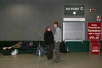Jelikož nastal čas, odkolébal jsem se nočním chladem ztuhlý k té "security control" a zblblej propagandou jim rval ten pytlajz s těma zubníma pastama a sprcháčema. Poprvé a naposled. Moudře pokývali hlavou, ale valně je to očividně nezajímalo. Ani "trubková bomba" vedle spacáku. Zato mne vyzuli i z kanad, na který detektor pískal jak zjednanej - železný floky a asi okovaná špička, no. Tak se jim líbily, že je potřebovali i zrentgenovat.