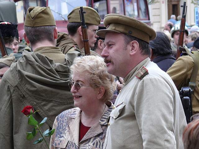 při položení kytky k pomníku padlých při osvobození. On je to i jeden