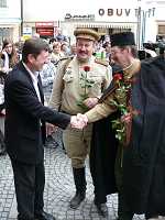 před Městským Úřadem - pan starosta, kytky, krojované ... co to