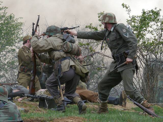 navzdory odvaze a hrdinným útokům Rudoarmějců, je Němci vítají přehradnou