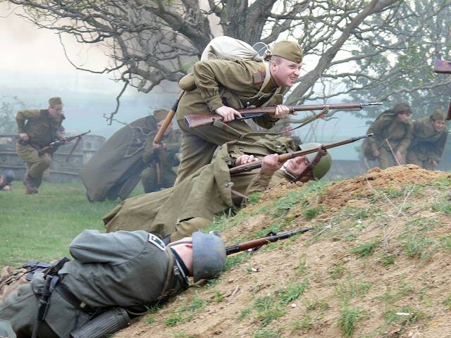 se sovětská vojska pokusí o větší útok, opět je přibije kulometná palba